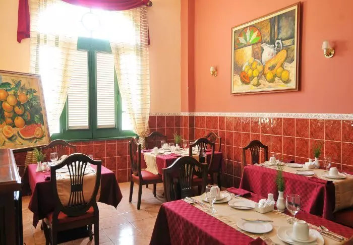 Hotellet har hyggelige fellesområder der du kan sitte og slappe av. I tillegg er det en liten restaurant som serverer både internasjonale og tradisjonelle cubanske retter. Her serveres også den inkluderte frokosten.