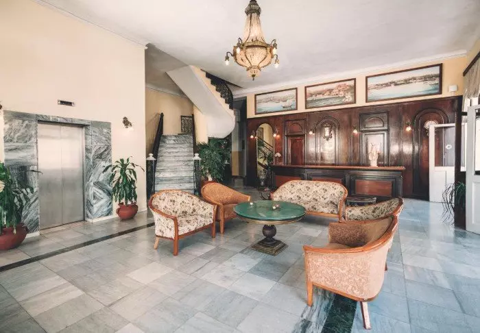 Hotellet er fra 1940-årene og ligger i hjertet av det historiske sentrum av byen.