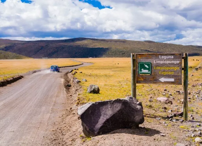 Ved ankomst i nasjonalparken tar guiden deg med på en interessant vandring rundt den vakre Limpiopungo-sjøen som ligger i 3 850 meters høyde. Guiden forteller om områdets interessante flora og fauna, og hvis du er heldig, får du øye på kolibrier, spisshjorter, ville hester og guanakoen, som er i familie med lamaen. Det lever også pumaer og brillebjørner i parken, men det er meget sjelden man får se dem.