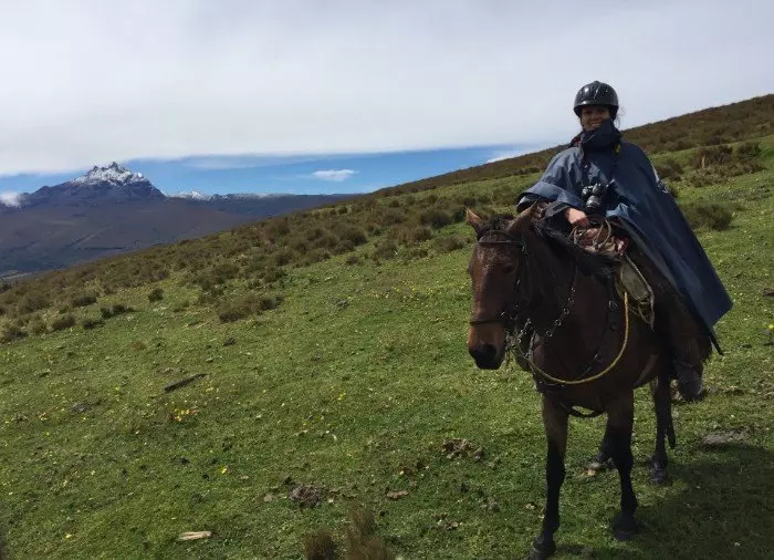 Hesten klatrer oppover fjellsiden på den utslukte Rumiñahui-vulkanen, mens du kan nyte livet og beundre den flotte naturen. Her er du omgitt av høye fjell og vulkaner, og i klart vær er det en ubeskrivelig utsikt til den snødekte Cotopaxi-vulkanen.