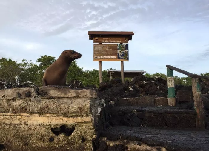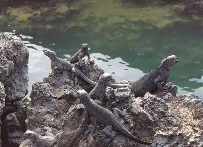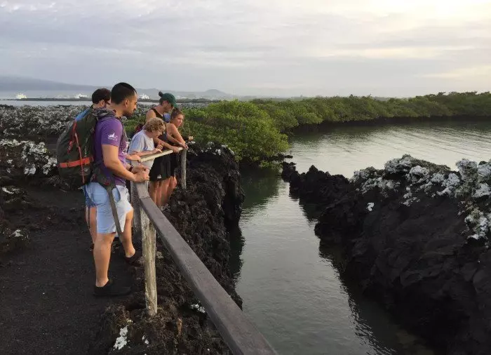 Du blir hentet på hotellet ditt i Puerto Villamil og kjørt til havnen. Herfra seiler du ut til småøyene Las Tintoreras, som ligger ganske nær Puerto Villamil. Først går du i land på en av øyene, der en liten enkel fottur på ca. 15 minutter fører deg til en lagune der det lever nyfødte sjøløver og hvittippede revhaier. På klippene ligger haviguanene nesten oppå hverandre og hviler seg.