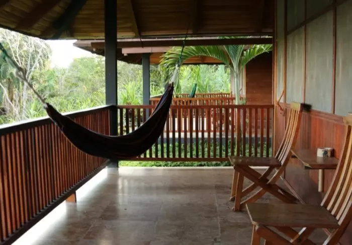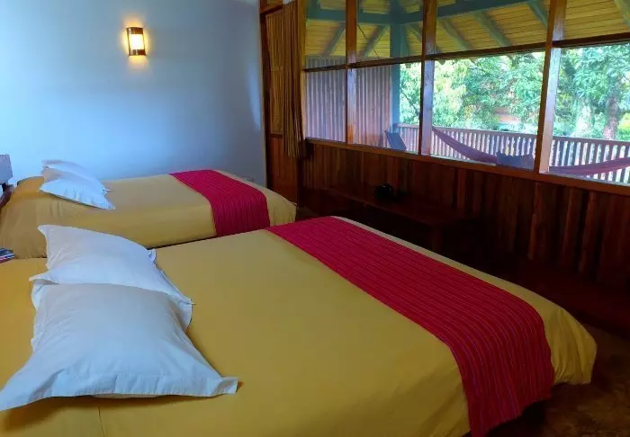 Lodgen har 76 store rustikke rom, som alle har vifte, privat bad og egen terrasse med en hengekøye der du kan slappe av og nyte de frodige omgivelsene. Der er bare myggnett foran vinduene, så du får en naturlig bris på rommet, og samtidig kan du ligge og lytte til jungelens lyder og den brusende elven. Om natten vil vi anbefale å bruke ørepropper, for regnskogens lyder er mer støyende enn du kanskje tror.