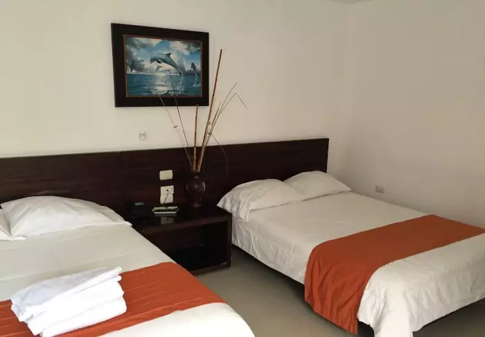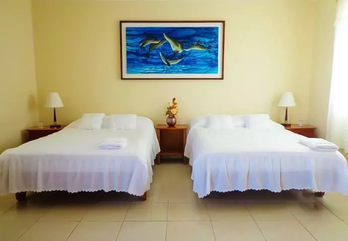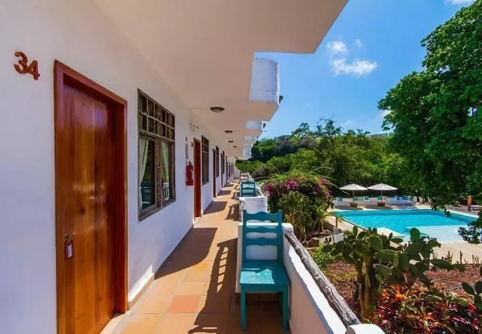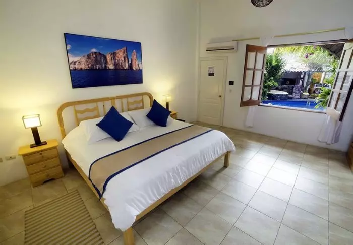 Det er bare 16 rom her (4 standardrom og 12 standardrom med havutsikt). Rommene er enkelt innredet, men pene og rene. På veggene henger det fargerike bilder av naturen og dyrelivet på Galapagosøyene. Alle rom har eget bad, aircondition, Wi-Fi og kabel-TV.