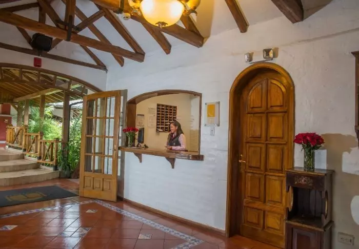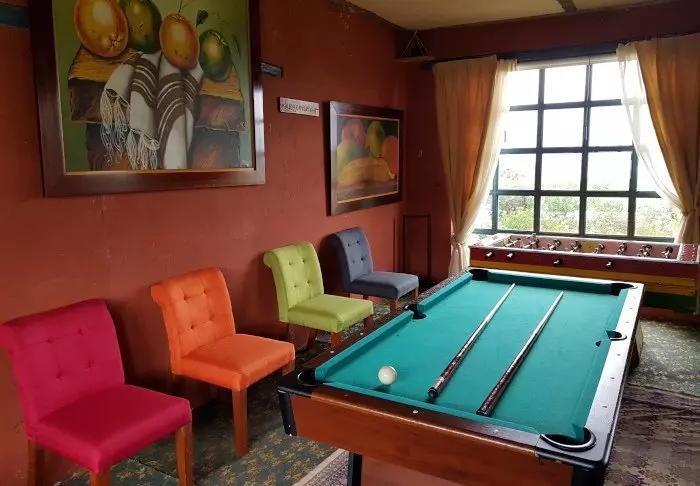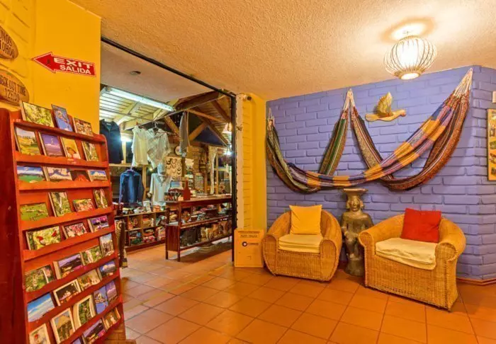 Det er flere områder der du kan slappe av med en kopp kaffe eller f.eks. spille sjakk. Hotellet har også sin egen butikk som selger flotte fargerike suvenirer fra Ecuador.