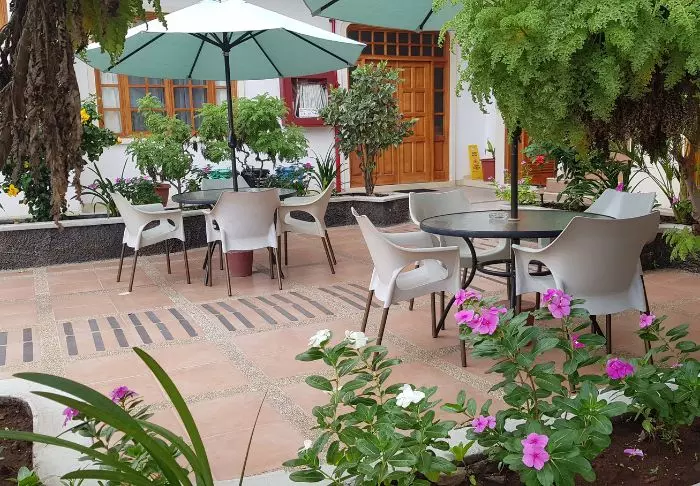 I den lille restauranten El Manglar serveres din inkluderte frokost som buffet. Restauranten har åpent hele dagen, så du kan også spise lunsj og middag her. Du kan både sitte inne i restauranten eller ved et av bordene i bakgården.