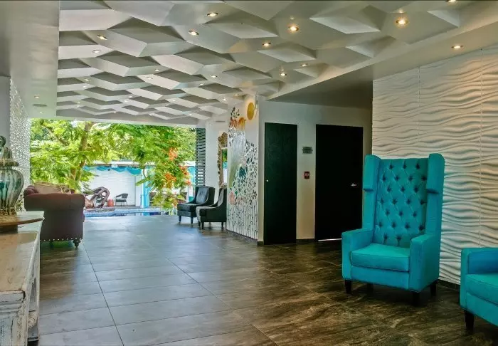 Det fargerike hotellet har to etasjer og har 29 rom som ligger rundt den frodige bakgården. Her er det mange hyggelige fellesområder der du kan slappe av i en hengekøye og få en prat med andre reisende.
