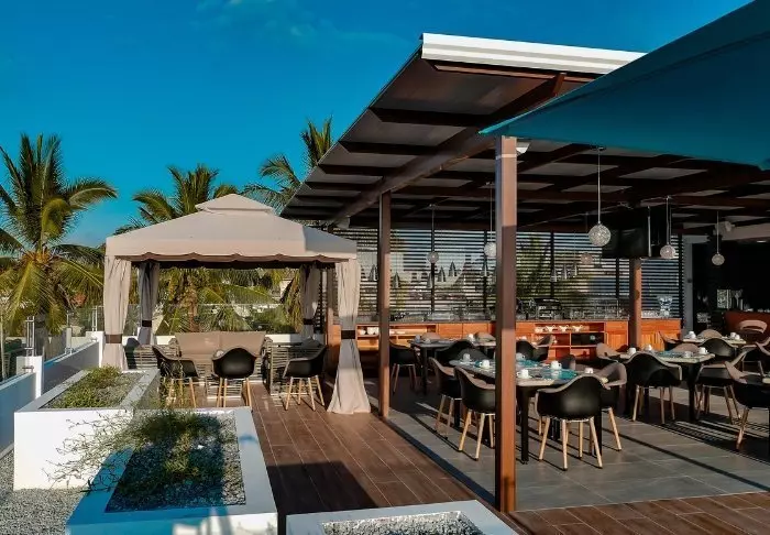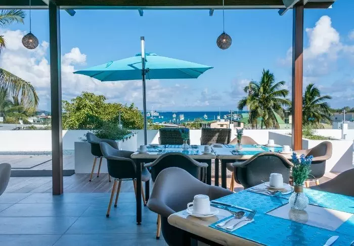 Hotellets restaurant, La Terraza, ligger i øverste etasje, med flott utsikt til den hyggelige havnen og den omliggende naturen. Her serveres den inkluderte frokosten som du kan spise i den friske morgenbrisen. På utvalgte dager serveres det også spise middag her oppe.
