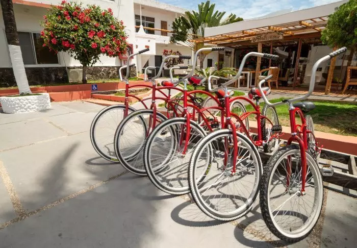 Hvis du skal besøke Tortuga Bay under ditt opphold i Puerto Ayora, ligger inngangen til stien bare 5 minutters gange fra hotellet. Hotellet har også sykler til gratis utleie, og dem kan du bruke til å komme deg rundt i byen.