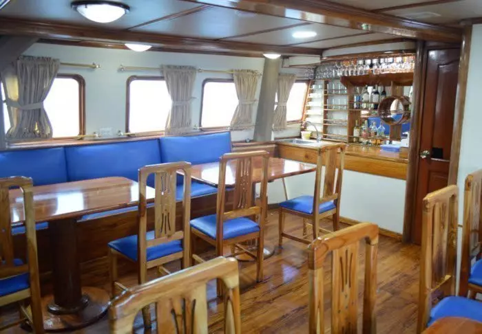 Det er flere hyggelige fellesområder på båten og et soldekk der du kan slappe av og snakke med andre reisende om dagens opplevelser. Generelt er det en hyggelig og familiær stemning ombord på båten, og både guiden din og besetningen gjør alt for at du skal få et uforglemmelig opphold på Golondrina I.