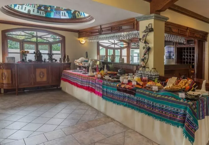 Hotellets restaurant skjemmer deg bort deg med en overdådig frokostbuffet. I tillegg til vanlige frokostretter varter de også opp med eksotiske ecuadorianske frukter og andre spesialiteter. Det er også mulig å bestille lunsj og middag á la carte i restauranten.