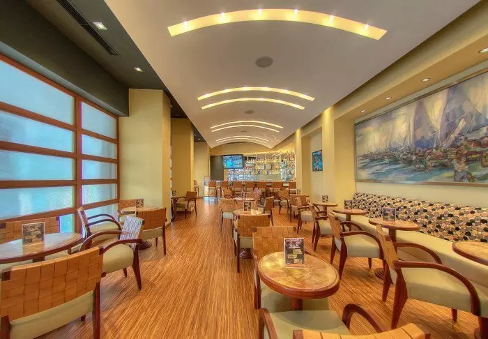 På restauranten serveres alle dagens måltider som buffet. Her er det også gratis vann, kaffe og te hele dagen.