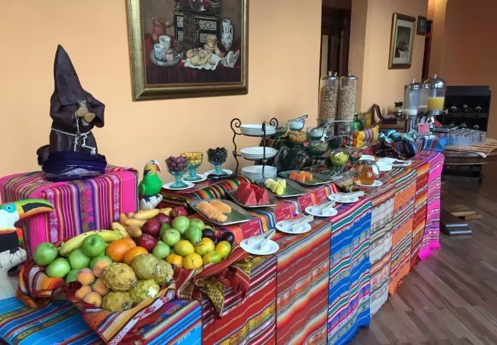 Hotellets restaurant skjemmer deg bort deg med en overdådig frokostbuffet. I tillegg til vanlige frokostretter varter de også opp med eksotiske ecuadorianske frukter og andre spesialiteter. Det er også mulig å bestille lunsj og middag á la carte i restauranten.