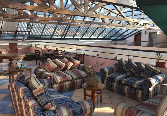 Det er flere områder der du kan slappe av med en kopp kaffe eller f.eks. spille sjakk. Hotellet har også sin egen butikk som selger flotte fargerike suvenirer fra Ecuador.