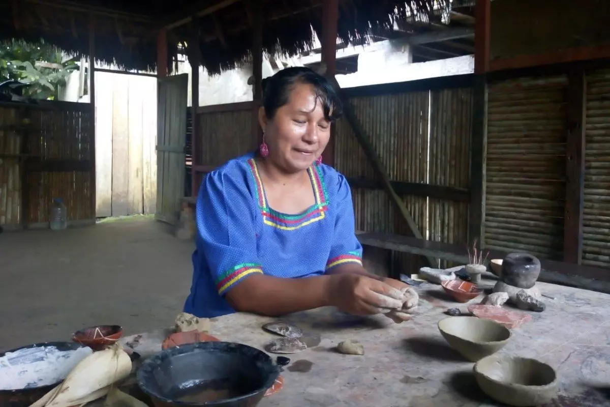 Lunsjen spiser du tilbake på lodgen, før du om ettermiddagen besøker et lite lokalsamfunn der gamle tradisjoner fremdeles holdes i hevd. Her får du et godt innblikk i hvordan lokalbefolkningen lever og dyrker forskjellige avlinger som yucca, kaffe, kakao og andre tropiske frukter. Du får også smake på den typiske jungeldrinken ”Chicha de Yuca”. Kvinnene lager skåler og boller til matlagingen for hånd. Det ser kanskje enkelt ut, men du kan prøve selv, og lett er det ikke. De lager den vakreste keramikk av enkle, naturlige materialer.