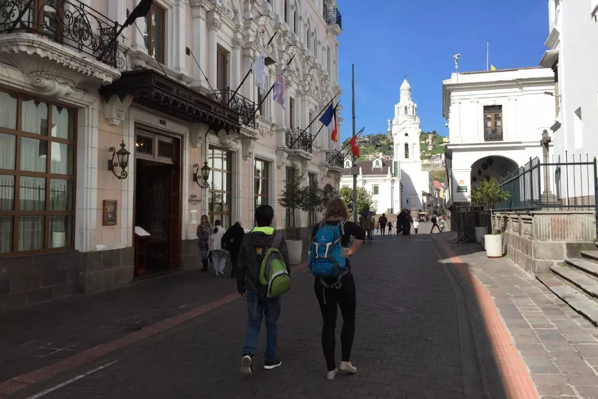 Du blir hentet på hotellet av guiden din etter frokost, og så går turen til den gamle bydelen. Først besøker du den vakre Plaza de la Independencia (“Uavhengighetsplassen”), som er omgitt av noen av Quitos viktigste bygninger: Presidentens palass, regjeringsbygningen, erkebiskopens palass og Quitos katedral. Fra Plaza de la Independencia følger du brosteinsgatene til kirken La Compañía, som innvendig er belagt med de fineste gullplater, og San Francisco-kirken, som er Quitos eldste kirke.