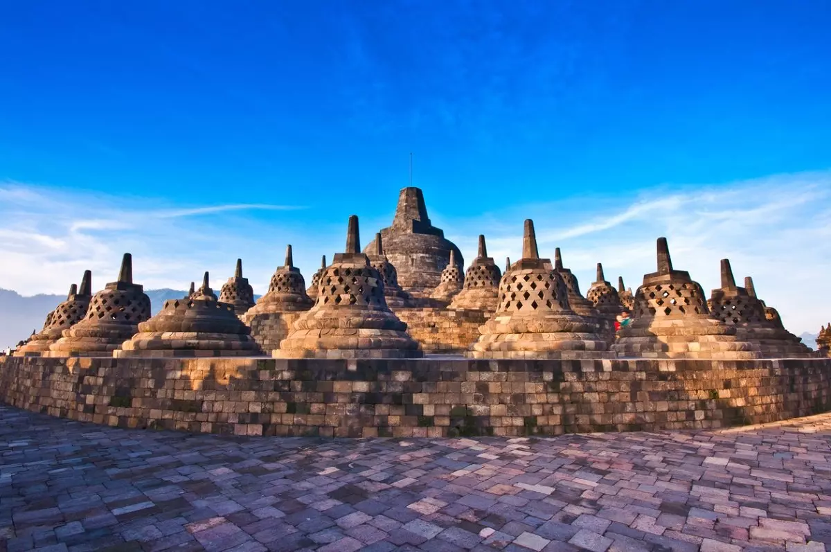 Dagen begynner med en fin sykkeltur gjennom det vakre landskapet rundt den lille landsbyen Candirejo, der livet ennå leves på tradisjonelt vis. Du sykler ca. 5-6 km på en flat og velholdt vei. Fra sykkelsetet får du et godt innblikk i den javanesiske kulturen og hvordan livet leves på landet. Det er deilig å føle vinden i håret og kjenne duftene av landskapet rundt seg. Du har tid til å stoppe underveis og ta en prat med lokalbefolkningen. Senere på dagen fortsetter du til det storslåtte Borobudur, ”buddhistklosteret på bakken”, der du utforsker det kjempestore tempelanlegget til fots. I løpet av besøket her får du vite mer om tempelets fascinerende historie og det tydelige symbolspråket i steinutskjæringene, du oppdager også skjulte hjørner og utskjæringer i bygningskomplekset. Sent på dagen går turen tilbake til hotellet.