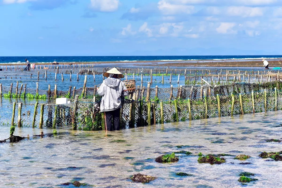 Mange av øyas innbyggere livnærer seg av å dyrke havtang. Når tidevannet trekker seg tilbake, dukker tangmarkene frem, og du vil se bøndene gå ut i det grunne vannet for å plukke dagens fangst. Den legges i store, flettede kurver som bæres inn på land, der den legges til tørk solen.