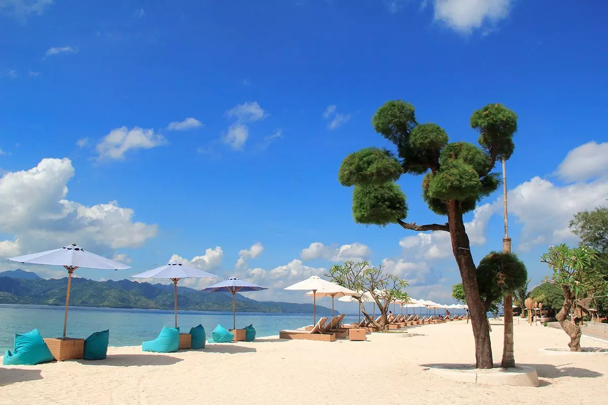 Reisen fortsetter til Gili Trawangan, en av de tre Gili-øyene. Gili Trawangan er spesielt populær på grunn av sine strender og gode muligheter til både dykking og snorkling. Her kan du bl.a. se havskilpadder. Om kvelden kan du slappe av i en sekkestol og kose deg med en drink mens solen stille går ned bak vulkanen Mt. Agung på Bali.