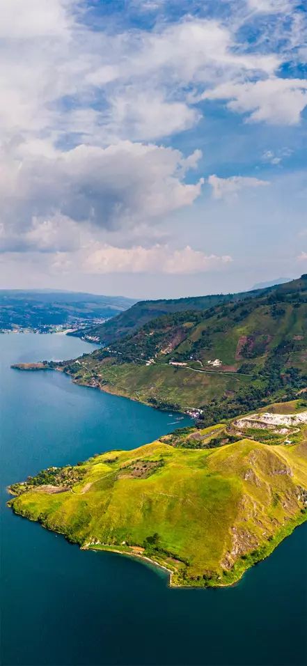 Reisen fortsetter til Parapat, der du tar en ferge til Samosir, som tar cirka 45 minutter. Samosir ligger som en perle midt i Tobasjøen, som er 100 km lang, 30 km bred og 505 meter dyp. Med sin enorme størrelse er Tobasjøen verdens største kraterinnsjø.