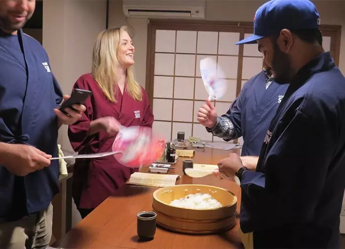 Bento-boksen er det japanske svaret på matpakke. Det er en liten beholder med ris, fisk eller kjøtt, litt grønnsaker, sushi osv. Disse lekre boksene kan kjøpes overalt, og er en perfekt lunsj. I dag får du muligheten til å lage din egen bento-boks. Du starter på japansk vis med en kopp grønn te og en kort innføring av kokkene, som snakker godt engelsk.