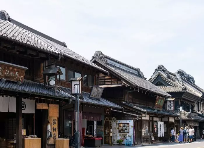 Til slutt besøker du Kawagoes lagerhusdistrikt, som utgjør en hel bydel. Kawagoe var en viktig handelsby som leverte varer til Edo. Dessverre utbrøt det 1893 en voldsom brann som ødela en tredel av bydelen. De fleste lagerhusene du kan se i dag er derfor ikke fra Edo-perioden. De ble gjenoppført på slutten av 1800-tallet med utgangspunkt i tradisjonell arkitektur, slik at det skulle ligne det gamle bybildet som i sin tid kjennetegnet Edo – og derfor har Kawagoe fått tilnavnet “Lille Edo”.