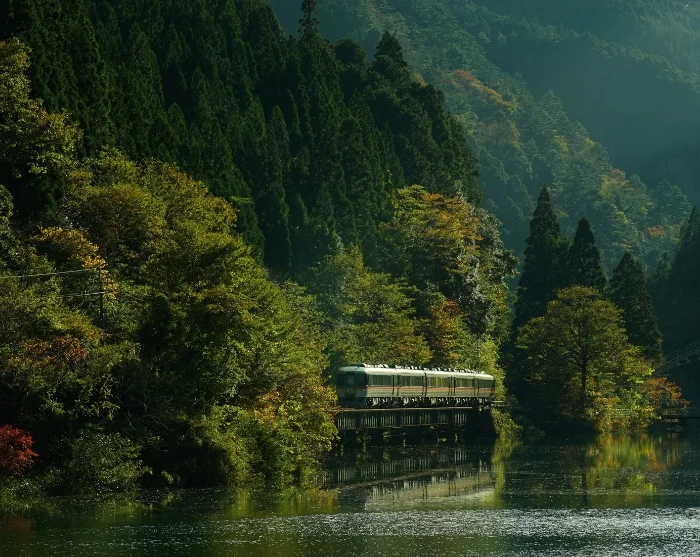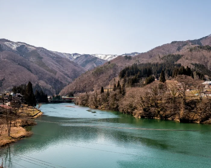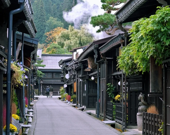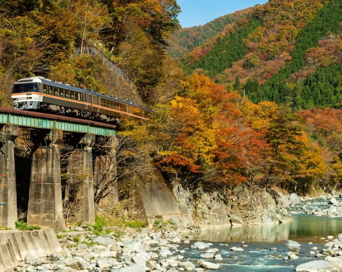 Herfra går turen med regiontog gjennom de japanske Alpene mot Takayama i nord. Ombord på toget kan du lene deg godt tilbake og nyte de drøyt tre timene i selskap med fjellenes vakre landskap som suser forbi vinduet. Underveis kjører du gjennom en rekke tunneler og følger Hida-elvens svingete løp forbi små fjellandsbyer, hver med sin fargerike bro som står i fin kontrast til årstidens skiftende farger.