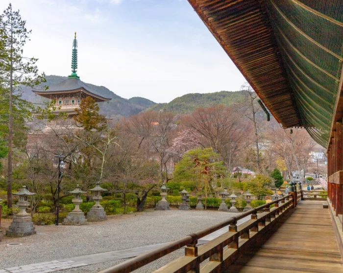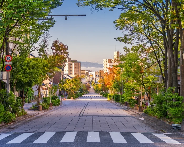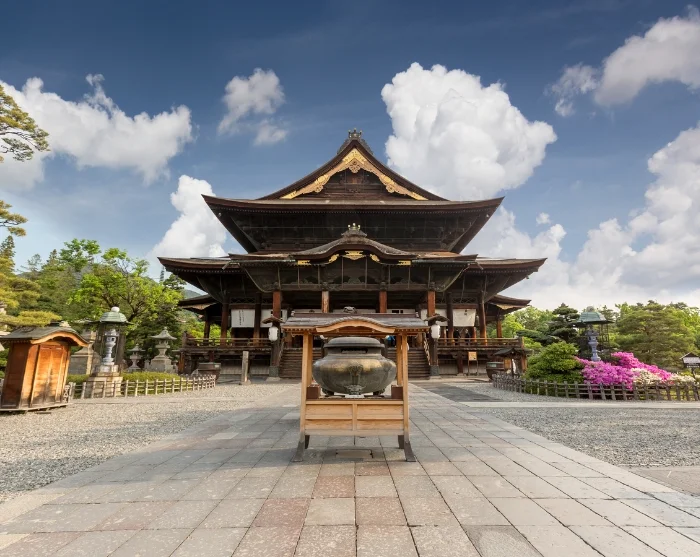 Et godt sted å starte er med en spasertur til Zenko-ji, et av Japans eldste og mest betydningsfulle templer. Her går du langs den brede alléen mot tempelplassen, hvor små butikker selger røkelse, håndlagde suvenirer og lokale spesialiteter. Inne i den imponerende trehallen hviler en spesiell stemning av stillhet, kun avbrutt av lavmælte bønner og den søtlig tunge duften av røkelse. Rundt tempelet kan du utforske smale sidegater med kaféer og små butikker, der hverdagslivet utfolder seg i et rolig tempo. Du kan også fortsette til Joyama Park, hvor stiene slynger seg gjennom grønne områder med utsikt mot fjellene.