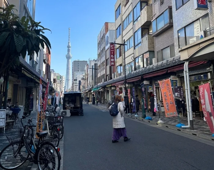 Du kan starte i det livlige Asakusa-distriktet, hvor du finner Tokyos eldste og mest berømte tempel, Senso-ji. På vei mot tempelet går du nedover Nakamise-dori, der duften av nystekte snacks blander seg med fristelsene fra boder fulle av lykkeamuletter, vifter og lokale spesialiteter. Bare noen gater unna råder en helt annen ro i Kappabashi Street, der små butikker selger japansk porselen og kokkekniver side om side. Ser du opp, reiser Tokyo Skytree seg mot himmelen som et moderne landemerke. Du kan nøye deg med å beundre tårnet nedenfra, eller – mot fremvisning av billett – ta turen opp og nyte den storslåtte utsikten over metropolen.