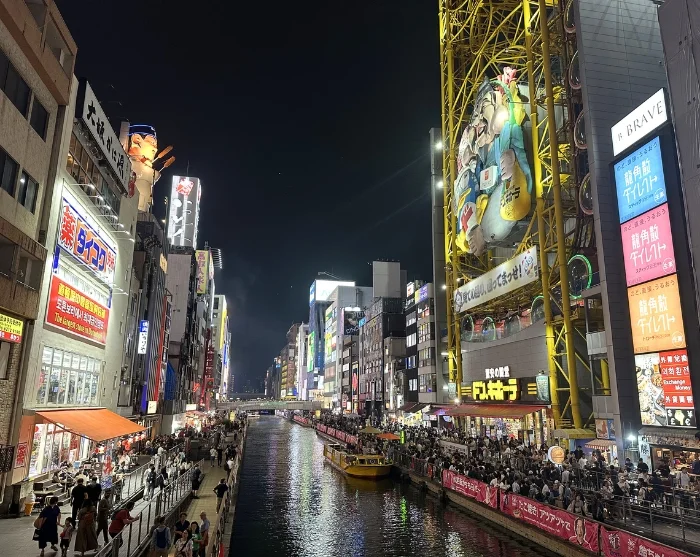 Når kvelden senker seg, speiler neonlysene seg i Dotonbori-kanalen, og restaurantene fylles med liv, latter og klirrende glass. Du kan gå på oppdagelsesferd blant de mange små izakayaene og spisestedene, hvor menyen spenner fra grillede spyd til dampende nudler. Stemningen er uformell og smittende, og det er lett å la seg rive med av byens energi og livsglede.