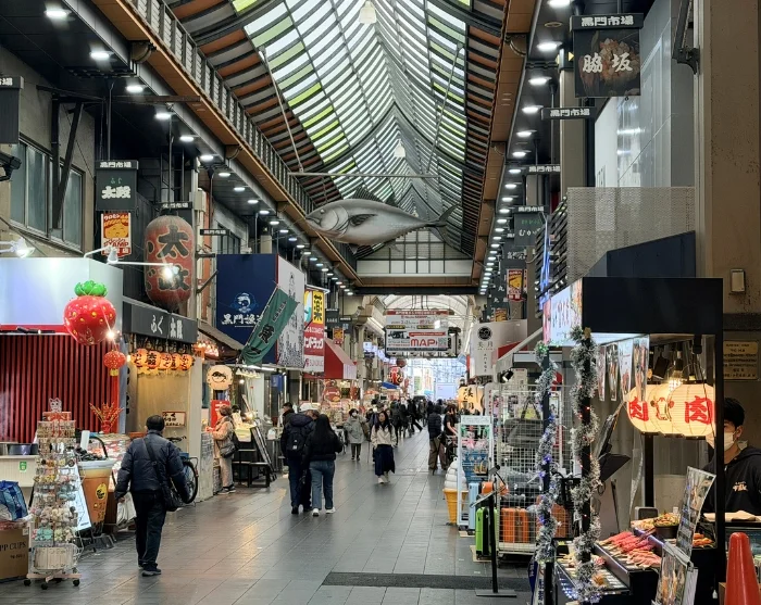 Den kulinariske byvandringen avsluttes ved Kuromon-markedet, et livlig matmarked med duften av nygrillet fisk, dampende supper og frukt arrangert i presise, pastellfargede mønstre. Her får du muligheten til å smake sprø takoyaki fylt med blekksprut, før du enten fortsetter på egen hånd eller vender tilbake til hotellet sammen med guiden din.