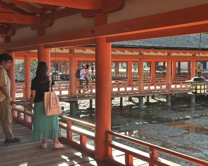Deretter får du tid til å utforske øya i ditt eget tempo. Langs stiene møter du de tamme hjortene som fredelig beveger seg blant besøkende. Du kan følge trappene opp til Daisho-in-tempelet, der hundrevis av små Buddha-figurer viser vei, eller rusle gjennom de koselige gatene med små boder og butikker. Smak gjerne på lokale spesialiteter som ferske østers, som har blitt oppdrettet her i mer enn 300 år, eller de søte kakene momiji manju, formet som lønneblader og fylt med rød bønnepasta.