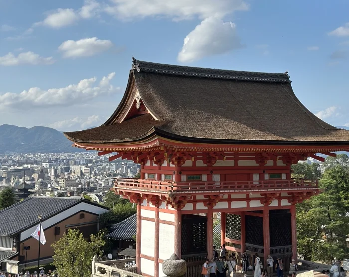 Hvis du starter dagen tidlig, rekker du å oppleve to av Kyotos mest kjente severdigheter. Med offentlig transport kan du dra nordvestover til det berømte tempelet Kinkaku-ji, også kjent som Gullpaviljongen. Templets gyldne fasade speiler seg vakkert i den rolige innsjøen og står som et av byens mest ikoniske motiver. Her kan du følge den nøye planlagte stien gjennom den tilhørende hagen, omgitt av årstidens vakre farger.