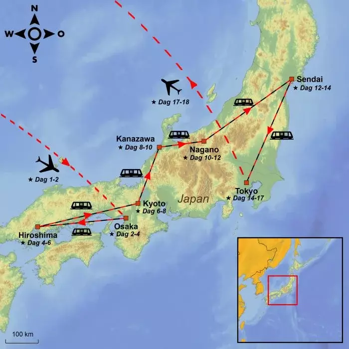 I dag tar du det første steget mot ditt japanske eventyr. Avreisen skjer fra den valgte flyplassen, og flyreisen foregår med en eller flere mellomlandinger underveis.