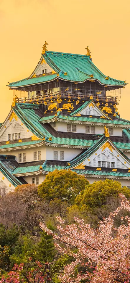 Ved ankomst i Osaka blir du hentet av en guide som følger deg til hotellet ditt. Deretter venter en interessant halvdagstur der guiden tar deg med på offentlig transport til Osaka-borgen. Den stammer fra shogun-tiden. Borgen er meget imponerende og utvendig en av Japans aller vakreste borger. Under besøket og i den tilhørende parken får du høre om shogun Hideyoshis storhetstid, da han brukte 100 000 mann til å bygge borgen sin på 3 år. Borgen har vært brent ned og gjenoppbygd flere ganger – senest i 1931. Fra øverste etasje er det flott utsikt over Osaka.