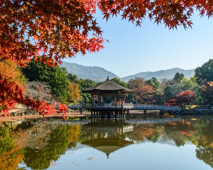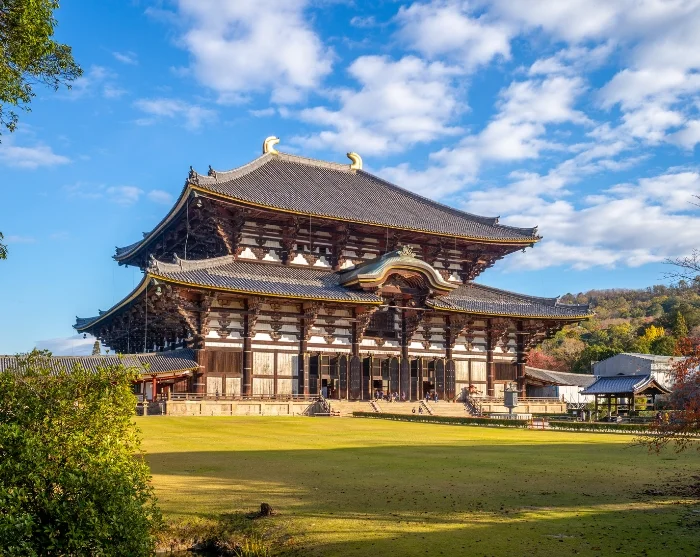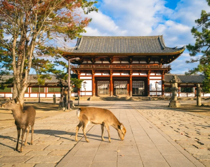 Deretter har du resten av dagen til fri disposisjon. Med Naramachis sjarmerende kafeer rett i nærheten er det perfekt å finne et sted for lunsj før du utpå ettermiddagen kan gå den korte veien til Nara Park. Her åpner landskapet seg med grønne plener, gamle trær og frittgående dådyr som rolig beveger seg blant de besøkende. Parken rommer noen av Naras mest betydningsfulle severdigheter, blant annet det imponerende Todai-ji-tempelet med den enorme bronsestatuen av Buddha.