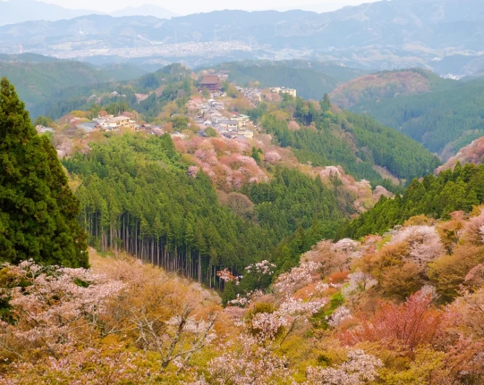 Noe av Japans vakreste natur kan du også oppleve på en heldagsutflukt til UNESCO-vernede Mt. Yoshino, hvor en kort tur med taubane tar deg opp gjennom skogkledde åssider som endrer karakter med årstidene. Her kan du besøke det imponerende Kinpusenji-tempelet, en av Japans største trebygninger og et viktig sentrum for shugendo-praksis. Området innbyr til rolige gåturer langs fjellstiene med små templer, lokale butikker og utsiktspunkter som særlig i kirsebærsesongen eller i høstfargene er helt spesielle.