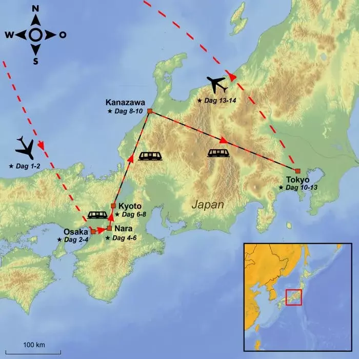 I dag tar du det første steget mot ditt japanske eventyr. Avreisen skjer fra den valgte flyplassen, og flyreisen foregår med én eller flere mellomlandinger underveis.