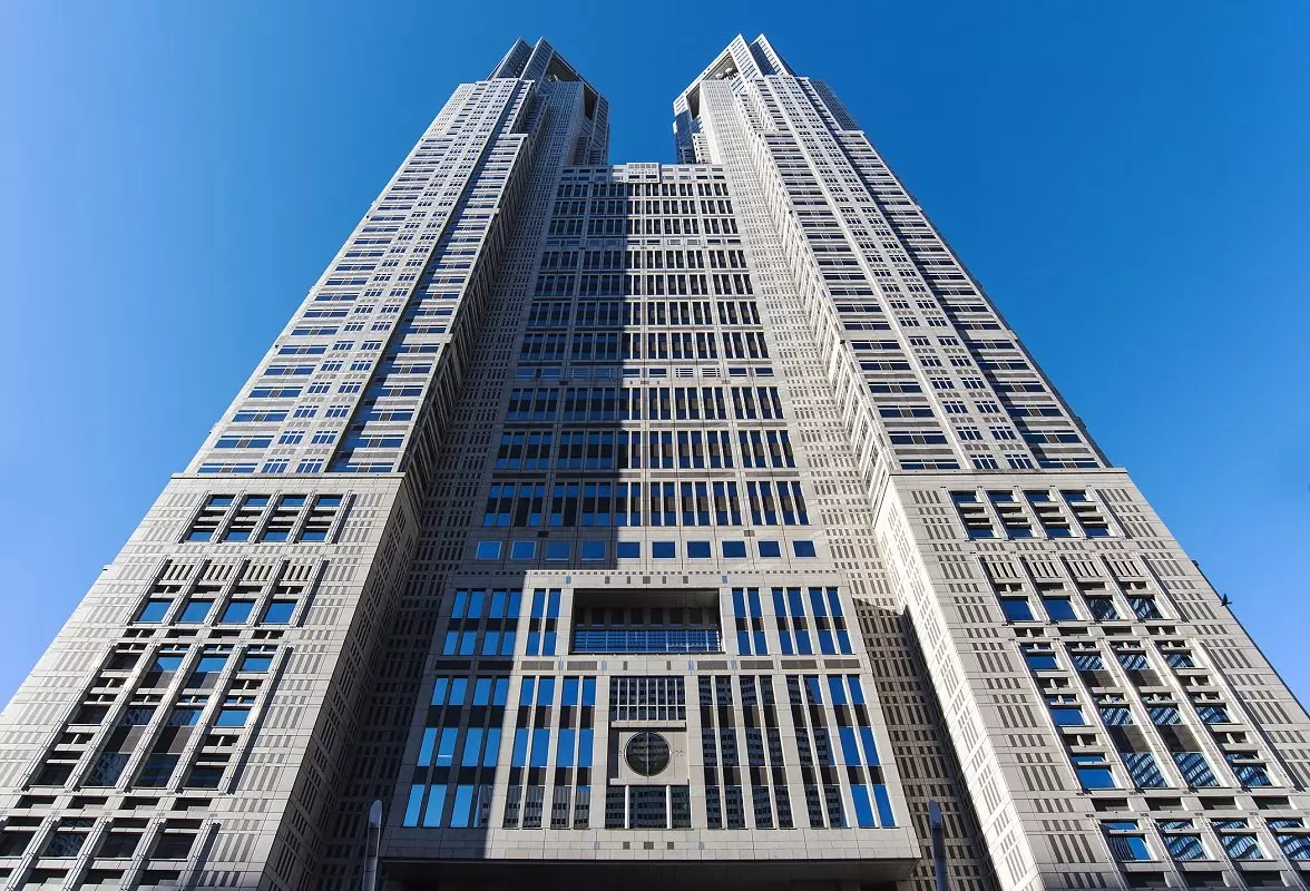 Herfra tar guiden deg med til Tokyo Metropolitan Government Building i Shinjuku, en av Tokyos høyeste og mest karakteristiske skyskrapere. Bygningen er 243 meter høy og har to tårn. Begge har en utsiktsplattform i 202 meters høyde, og der er det en formidabel utsikt over byen: i klart vær kan man ofte se Fuji-fjellet i det fjerne, men også det mer nærliggende Tokyo Skytree, Tokyo Tower, Meiji-helligdommen og Tokyo Dome kan ses herfra.