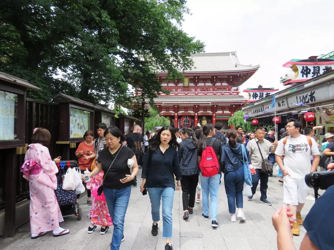 Asakusa er Tokyos gamle bydel. Her finnes det fremdeles noen gamle bygninger, og i dette området finner du ingen store høyhus. I tillegg til den hyggelige stemningen i gatene og stredene er den viktigste severdigheten her Sensoji. Overfor inngangen til templet ligger turistinformasjonen. Ta heisen til toppen av bygningen og få et flott utsyn over tempelanlegget. Sensoji er Tokyos eldste tempel, og for mange japanere er det viktig å komme hit for å brenne røkelsespinner. Nakamise er den lange gågaten med suvenirbutikker og matboder som fører opp til Sensoji-templet. Her er det alltid liv og røre, og du vil oppleve kvinner, par og noen ganger hele familier iført tradisjonelle kimonoer. De er på vei for å tenne røkelsespinner og vifte hellig røyk på seg i håp om å bli kvitt sykdom, få hell i livet, få et barn eller kanskje noe helt annet.