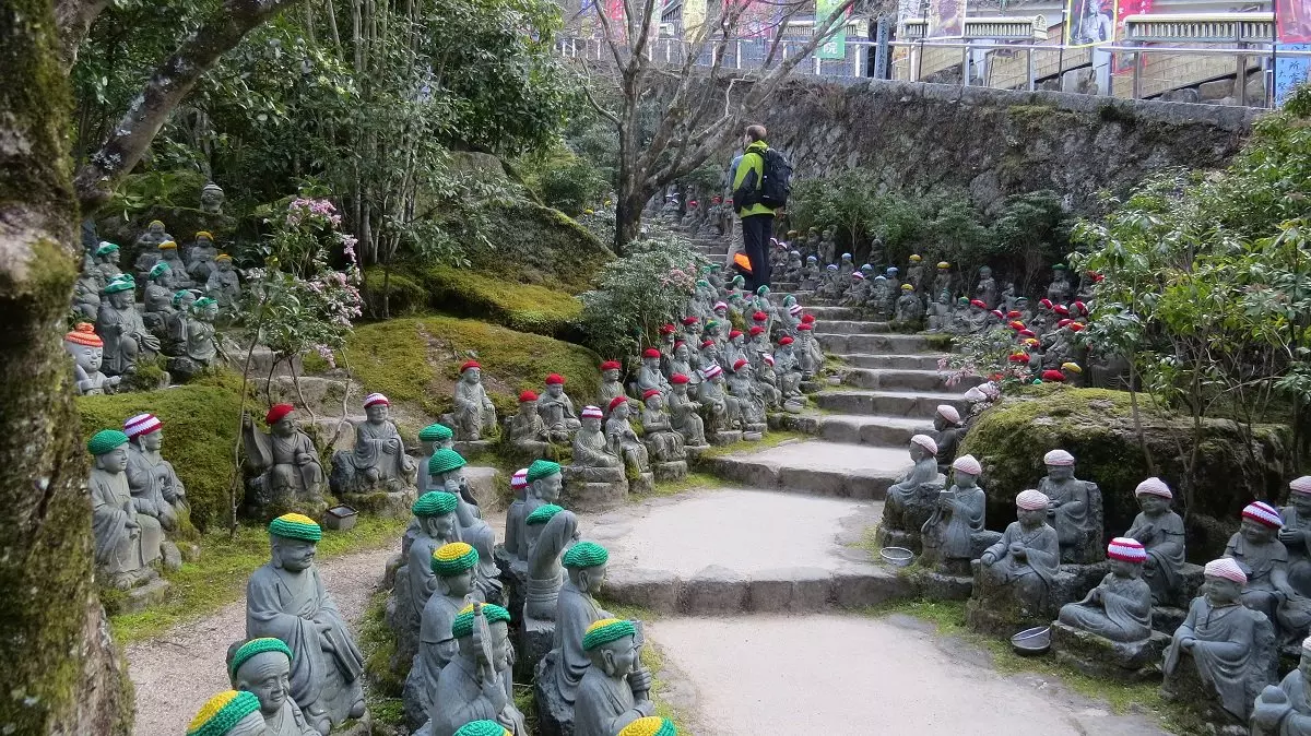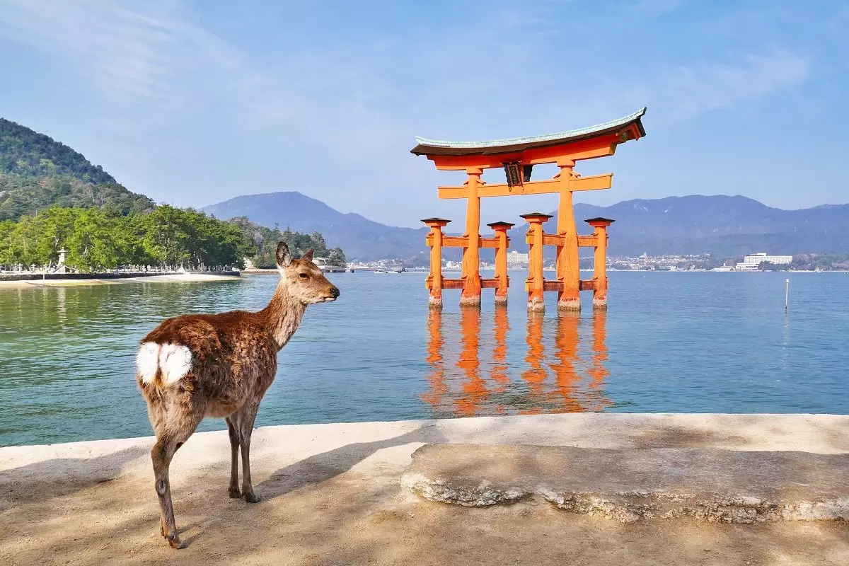 Vi foreslår en dagstur til Miyajima. Miyajima ligger mindre enn én times reise fra Hiroshima, og det er enkelt å komme dit med offentlig transport. Det er her du finner den knapt 20 meter høye verdensberømte oransjerøde porten som ligger ute i vannet, og ved høyvann ser ut som om den flyter på vannet. Når du ankommer øya, som egentlig heter Itsukushima, med fergen kommer du gjennom noen turistgater med suvenirbutikker, små gavedelikatesseforretninger og kafeer før du kommer frem til stedet der du kan se den enorme porten. Underveis treffer du nok også de tamme sikahjortene. På øya ligger Daisho-in, et buddhistisk tempel som er åpent for besøkende. Et merkelig fenomen er at buddhaene her ofte har på seg skjerf og lue. Du kan også ta kabelbanen til toppen av Misen-fjellet, der du har en formidabel utsikt over Hiroshima og innlandshavet, der det ligger over 3000 småøyer. Det er også fine turstier på øya.