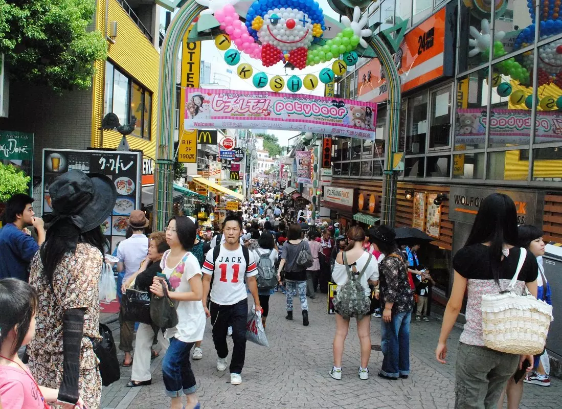 Heretter går turen til Harajuku, et annet av Tokyos motemekkaer. En av de berømte gatene i Harajuku-distriktet er Takeshita Dori, som sammen med sidegatene her er et mekka for tenåringskultur. Her ser du spesielt unge mennesker som er veldig fargerikt og uvanlig kledd, og stort sett er alt tillatt, men alle er likevel absolutt tekkelige.