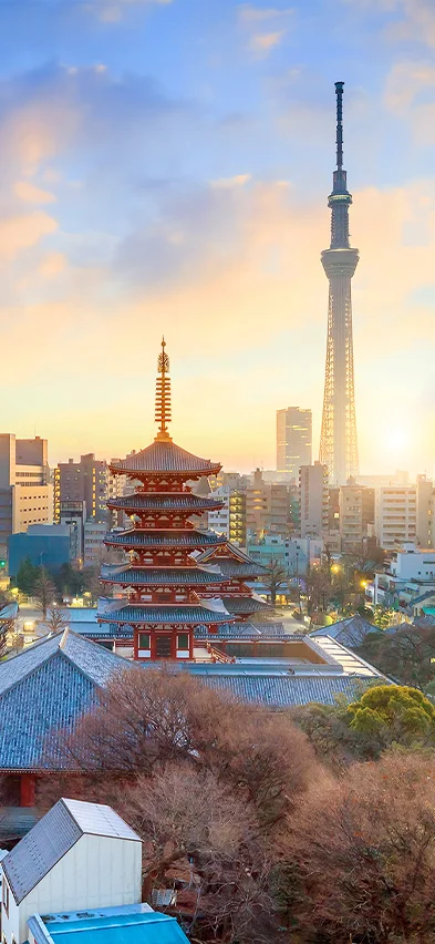 Asakusa er Tokyos gamle bydel. Her finnes det fremdeles noen gamle bygninger, og i dette området finner du ingen store høyhus. I tillegg til den hyggelige stemningen i gatene og stredene er den viktigste severdigheten her Sensoji. Overfor inngangen til templet ligger turistinformasjonen. Ta heisen til toppen av bygningen og få et flott utsyn over tempelanlegget. Sensoji er Tokyos eldste tempel, og for mange japanere er det viktig å komme hit for å brenne røkelsespinner. Nakamise er den lange gågaten med suvenirbutikker og matboder som fører opp til Sensoji-templet. Her er det alltid liv og røre, og du vil oppleve kvinner, par og noen ganger hele familier iført tradisjonelle kimonoer. De er på vei for å tenne røkelsespinner og vifte hellig røyk på seg i håp om å bli kvitt sykdom, få hell i livet, få et barn eller kanskje noe helt annet.