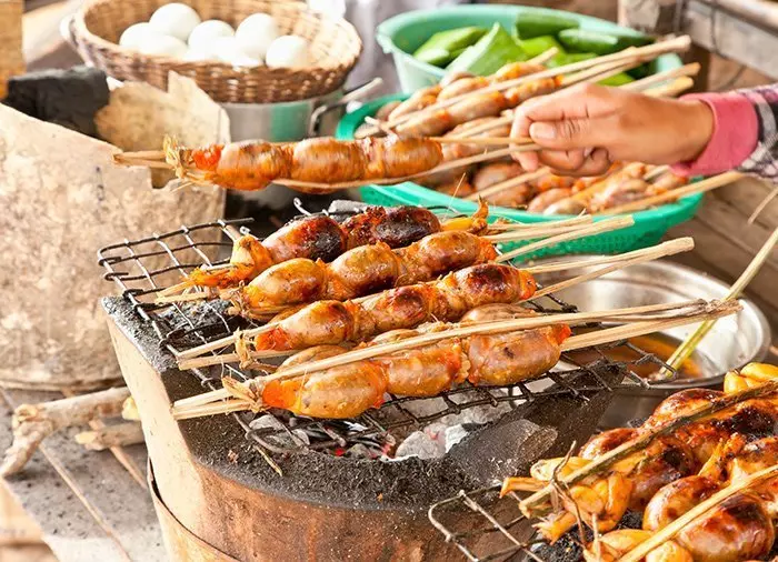 Du blir hentet på hotellet og kjørt litt ut av byen, der du får anledning til å smake på en rekke tradisjonelle spesialiteter og autentiske snacks. Prøv blant annet grillede vaktelegg, frityrstekte gresshopper og taranteller, som betraktes som delikatesser. Det finnes også nudler, grillet kjøtt, eksotiske frukter, Khmer-kaker og kalde drikkevarer som øl og brus. Du fortsetter i tuk-tuk til den kjente Pub Street, en livlig og fargerik gate som danner sentrum for kveldslivet i byen. Turen avsluttes med en drink i området rundt Pub Street på Miss Wong Cocktail Bar eller Sokkhak River Lounge.