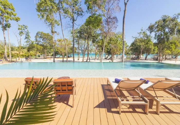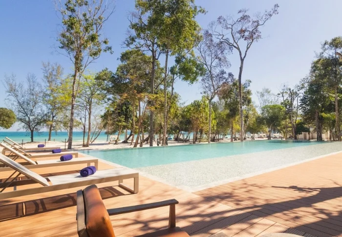The Royal Sands er beliggende på Koh Rong, den største av de to Koh Rong-øyene. Her går alt opp i en høyere enhet i dette fantastiske barfotparadiset, som ligger rett på Koh Rongs beste strand Long Beach, også kalt Sok San Beach. Luksusresortet åpnet dørene i 2018 og er gjennomført og smakfullt innredet med en avslappende atmosfære.