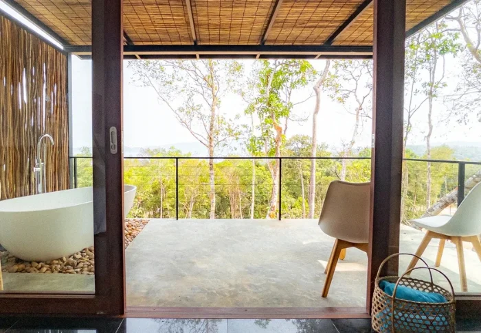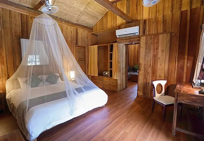 Resorten har 33 bungalower som er lyse og smakfullt dekorert med bærekraftige materialer. Alle har aircondition, minibar, TV, takvifte, kjøleskap, fasiliteter for å lage kaffe/te, TV og wifi. En skyvedør åpner seg mot en privat balkong med bord og stoler, der du kan nyte roen og de frodige omgivelsene. Badene er utstyrt med dusj, hårføner og toalettsaker.