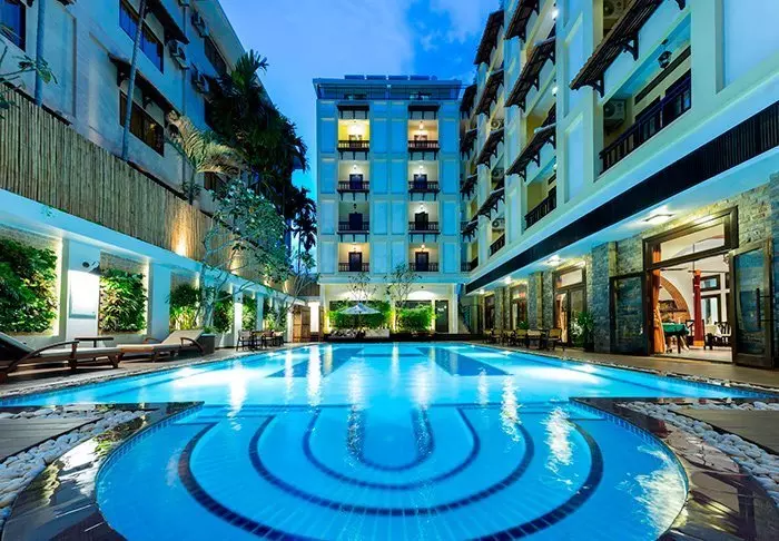 Etter en dag med tempelbesøk og opplevelser i Siem Reap kan du ta en pause ved hotellbassenget, som innbyr til avslapning i grønne og rolige omgivelser. Hotellet har også et velværeområde der du kan unne deg massasje og andre avslappende behandlinger, slik at kroppen finner roen etter dagens mange inntrykk.
