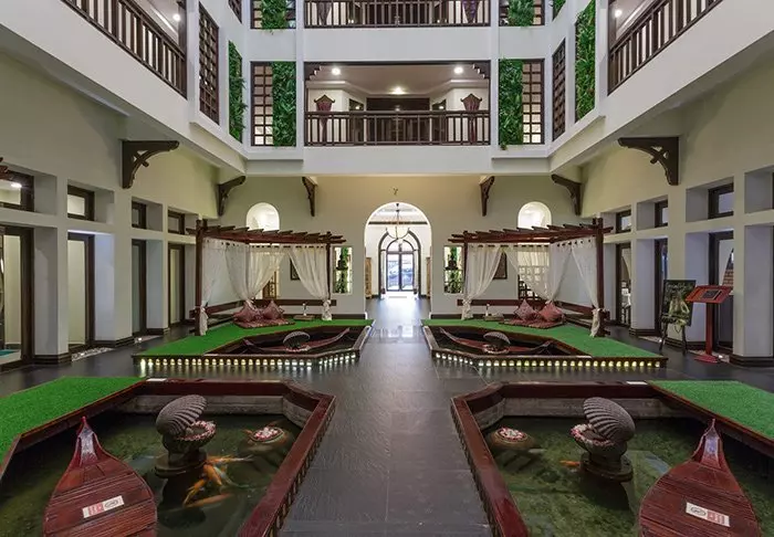 Hotellet er moderne og lyst innredet, med fine rustikke detaljer – legg spesielt merke til den snodde trappen, søylene og veggene. Flere steder på hotellet er det innredet hyggelige kroker der du kan sitte og slappe av med en god bok.