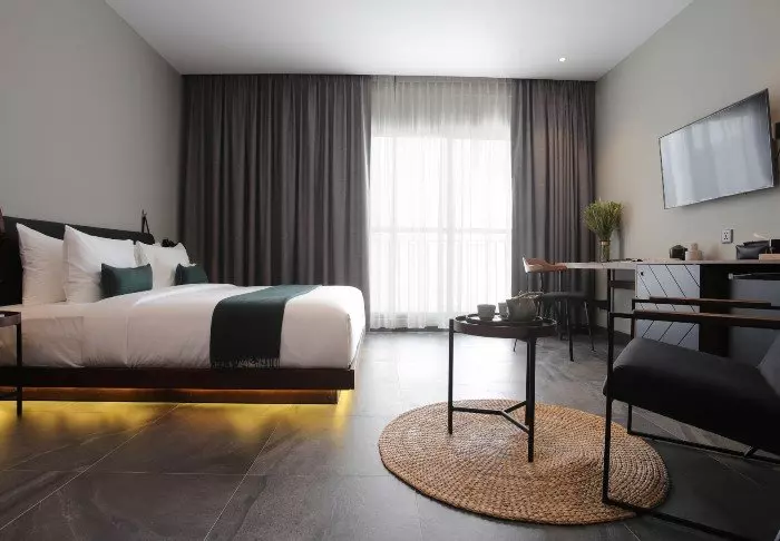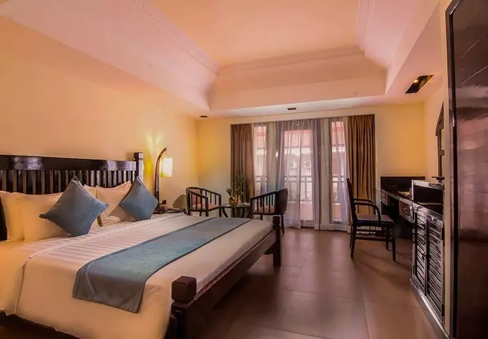 Hotellet har 28 romslige rom, og som utgangspunkt bor du på et standardrom i andre etasje med balkong og utsikt mot hagen. Rommet er ca. 36 m² og innredet i en enkel og innbydende stil med kambodsjanske håndverksdetaljer som gir rommet karakter. Alle rom har store vindusflater som sikrer et behagelig lysinnslipp, samt aircondition, Wi-Fi, TV, minibar og sikkerhetsboks. I tillegg har du eget bad med dusj og hårføner.