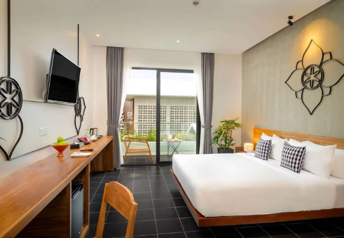 Hotellet har 28 romslige rom, og som utgangspunkt bor du på et standardrom i andre etasje med balkong og utsikt mot hagen. Rommet er ca. 36 m² og innredet i en enkel og innbydende stil med kambodsjanske håndverksdetaljer som gir rommet karakter. Alle rom har store vindusflater som sikrer et behagelig lysinnslipp, samt aircondition, Wi-Fi, TV, minibar og sikkerhetsboks. I tillegg har du eget bad med dusj og hårføner.