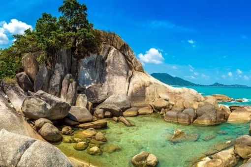 Som standard bor du på nordkysten av Koh Samui i den rolige og idylliske strandbyen Mae Nam, som tilbyr en rolig og fredelig atmosfære med en fin honningfarget strand. Stranden er ikke veldig bred, men vannet er rolig og behagelig varmt. Mae Nam ligger ved siden av Bophut, som er kjent for sin vakre bukt med gylne sandstrender og rolig vann. Her finner du også Fisherman’s Village – et sjarmerende område med et vell av små butikker med lokal kunst og håndverk, barer og, ikke minst, restauranter som serverer deilig mat.